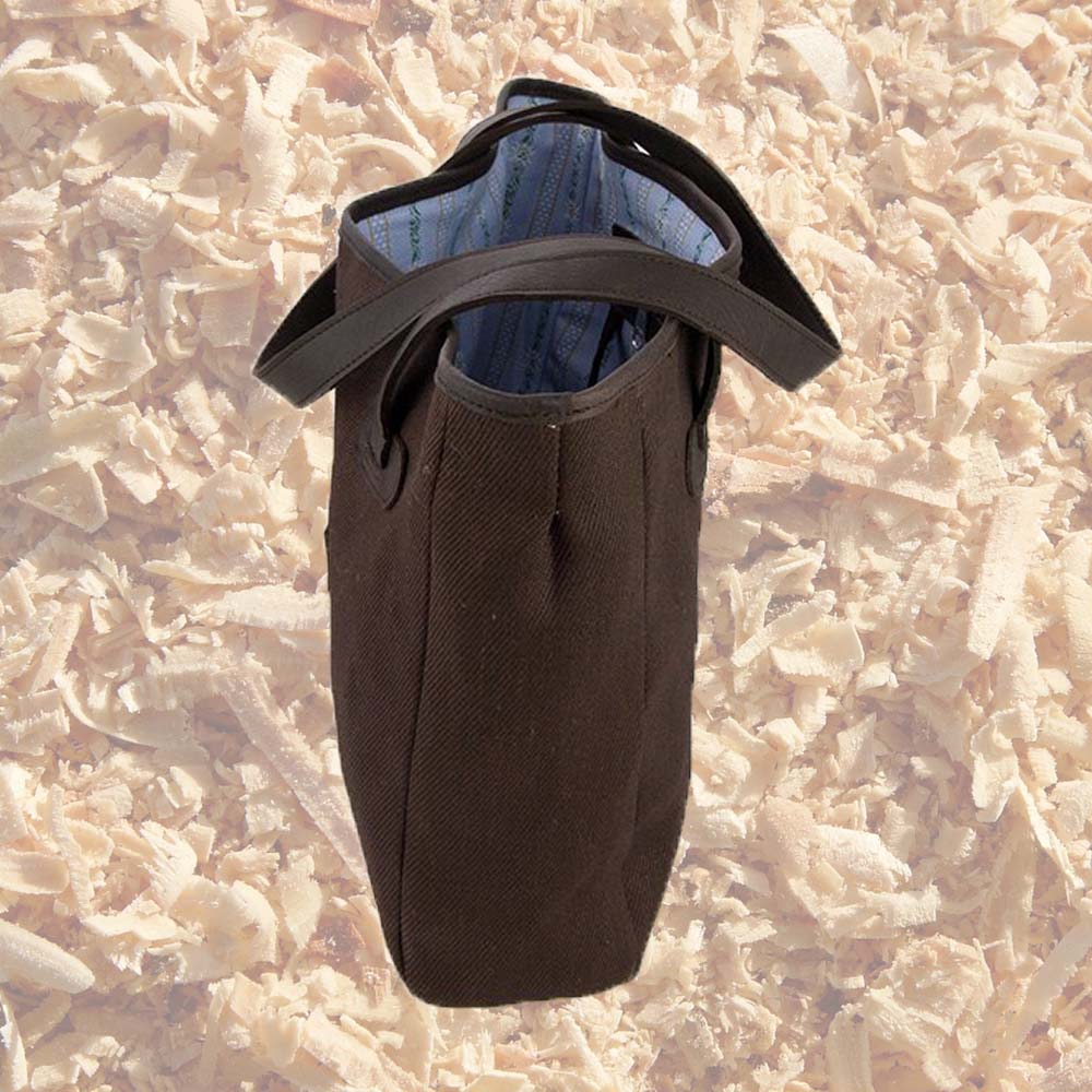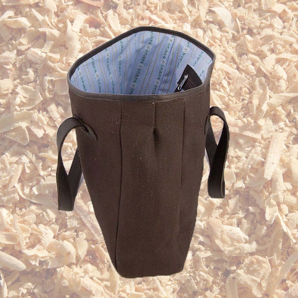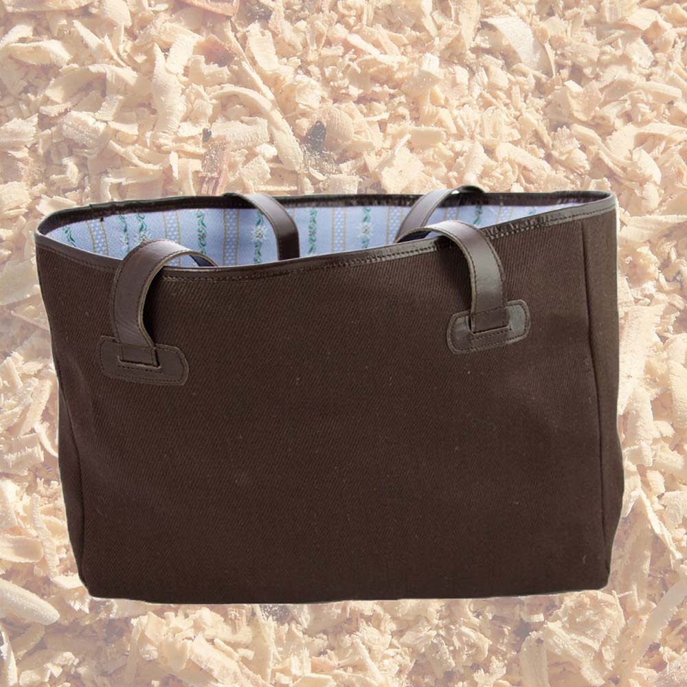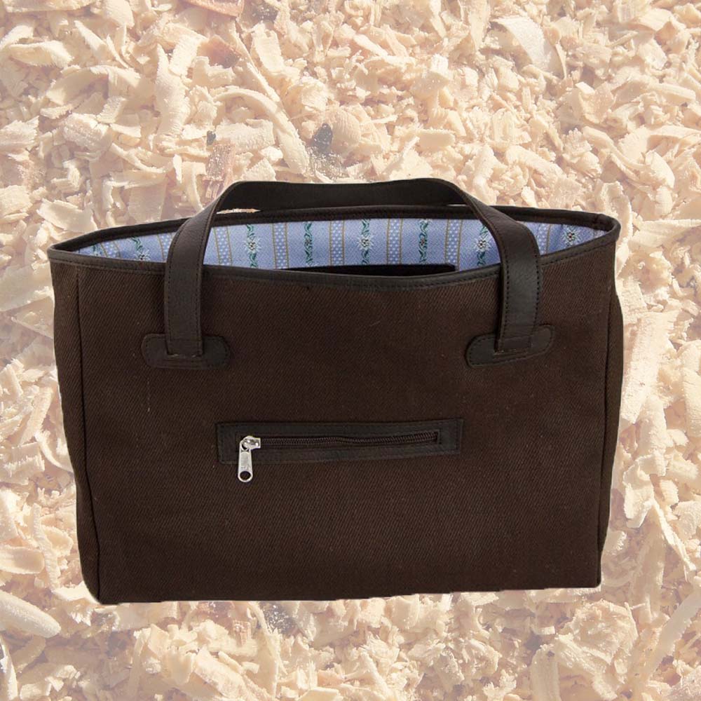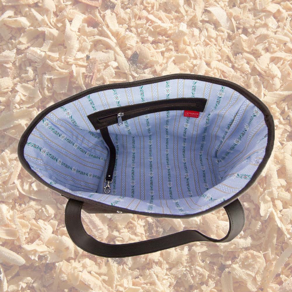 Einkaufstasche aus Schwingerhosenstoff und Leder